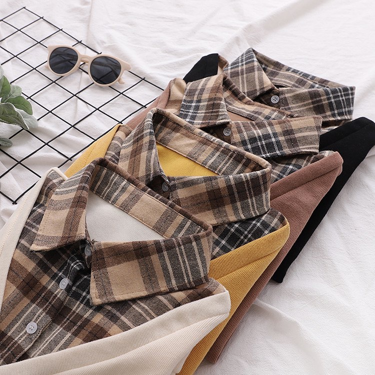 Femes Kimberly Flanel Blouse Combi Fold Terry Shirt Atasan Kemeja Flannel Top Muslim Wanita Premium Korean Style