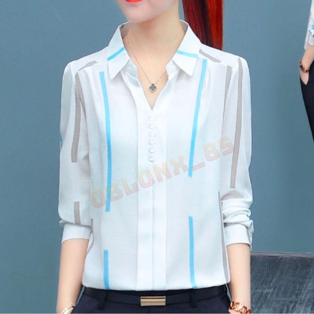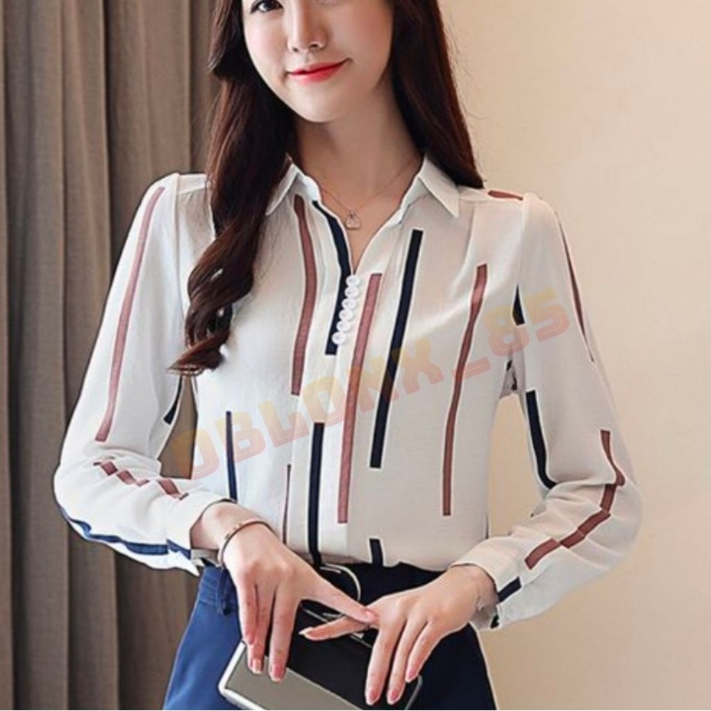 #Kemeja Bluse Wanita motif garis Stripe Lengan Panjang best seller