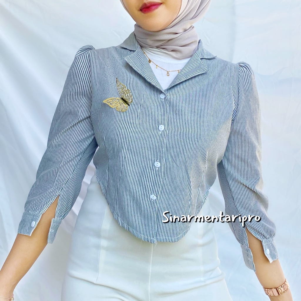 KAMARI - Kemeja Puff Motif Salur Kotak Baju Atasan Wanita