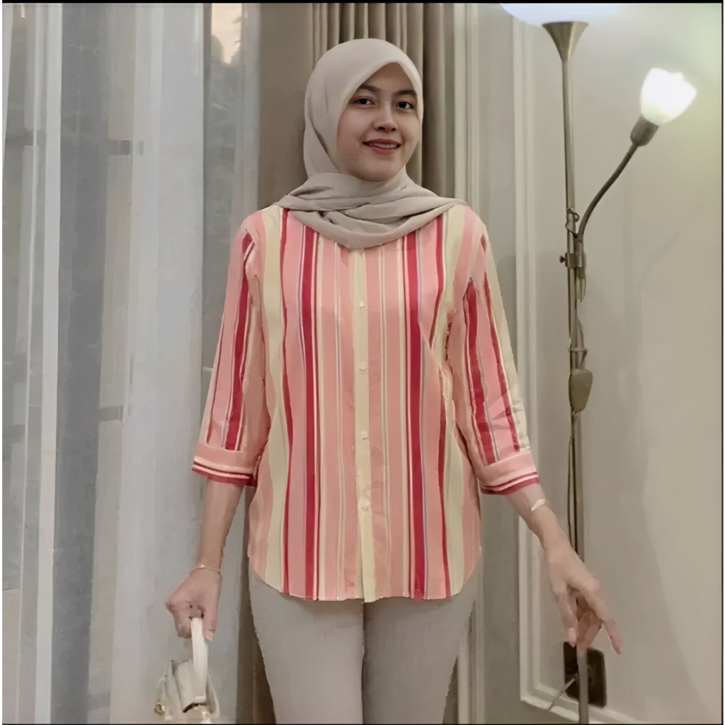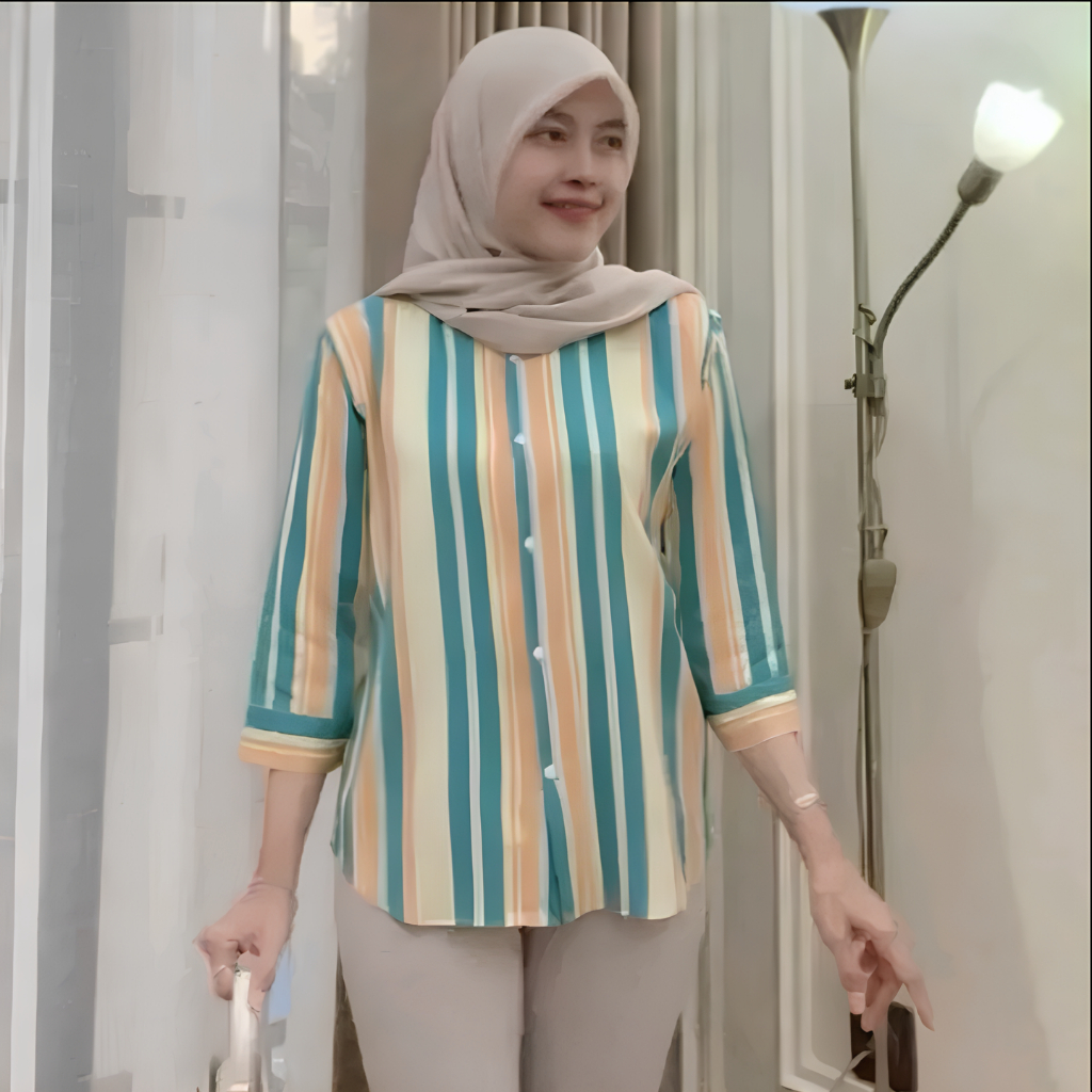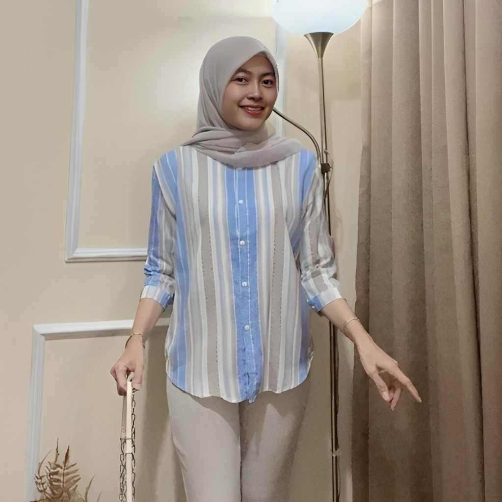 ( PROMO MURAH MERIAH) Atasan Wanita // Daily Top Blouse Motif Salur Lengan 7/8 LD 120cm Kekinian