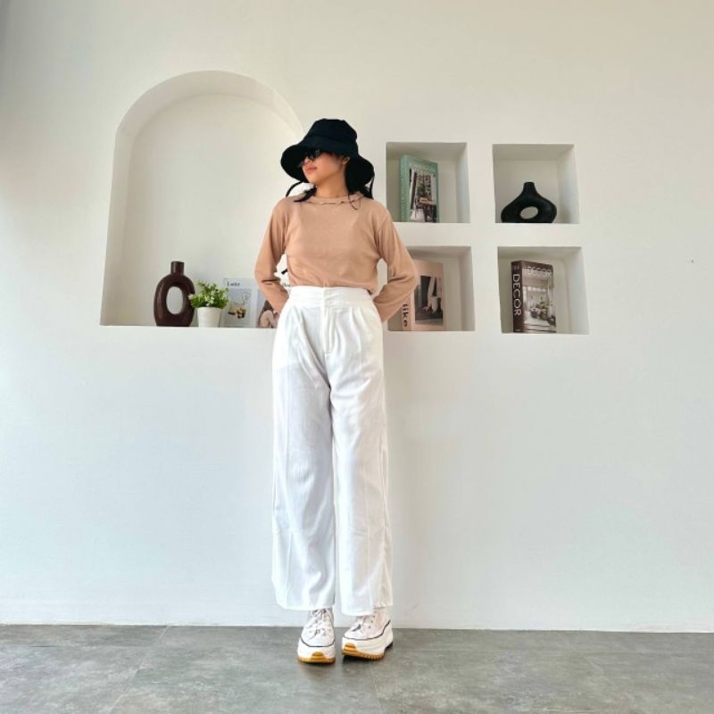 Celana Kulot Jennie Knit Pants Kancing 2 Resleting Loose Pants Wanita Highwaist