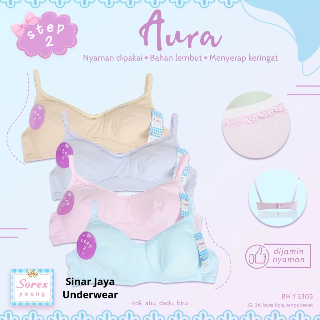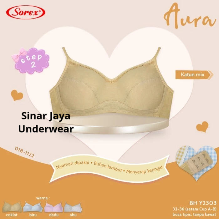 Sorex - Mini Bra Remaja Step 2 Y2303 Bahan Katun Mix, Tanpa Kawat, Busa Tipis, Cup A kecil