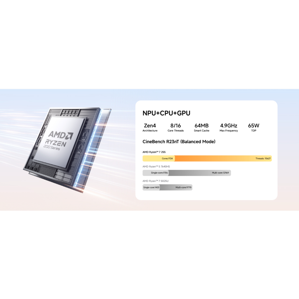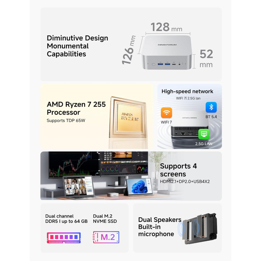 MiniPC Gaming Minisforum Ryzen7 Ai X1 255 Ocu HDMI DP USB4 Quad Display 120Hz WiFi7 Windows 11 Pro
