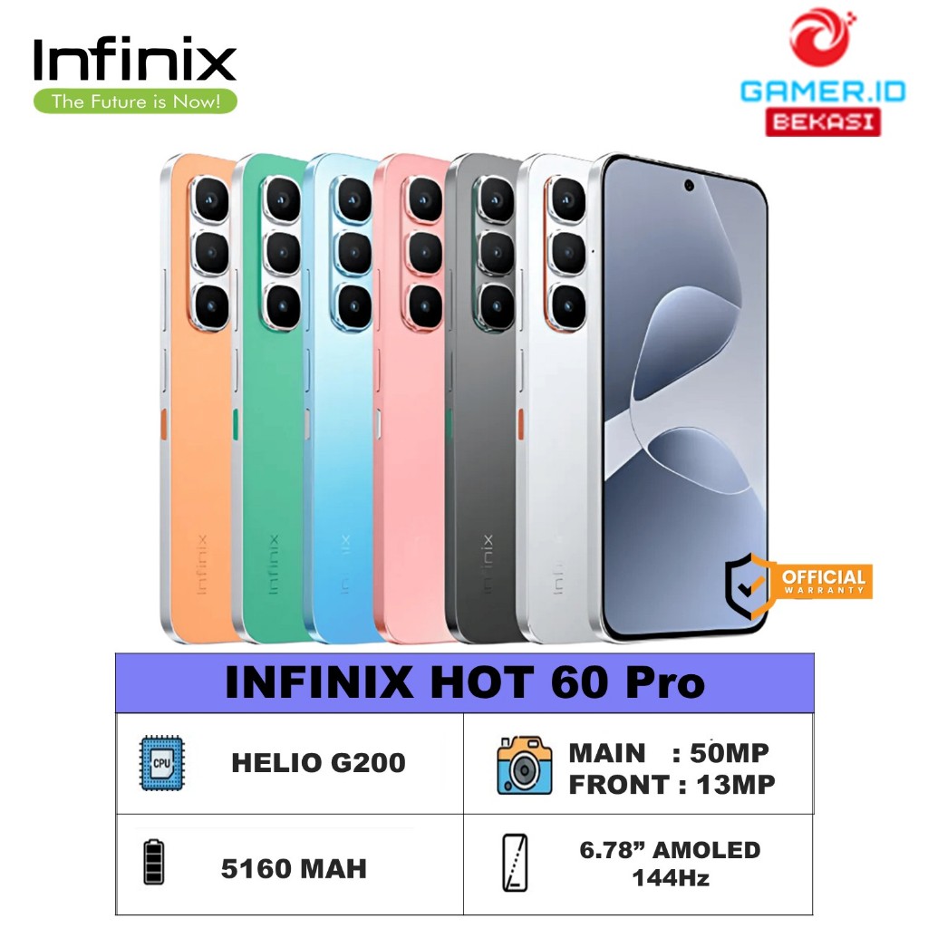 INFINIX HOT 60 PRO 8GB/256GB - HELIO G200 - 1.5K 144HZ AMOLED RESMI INDONESIA