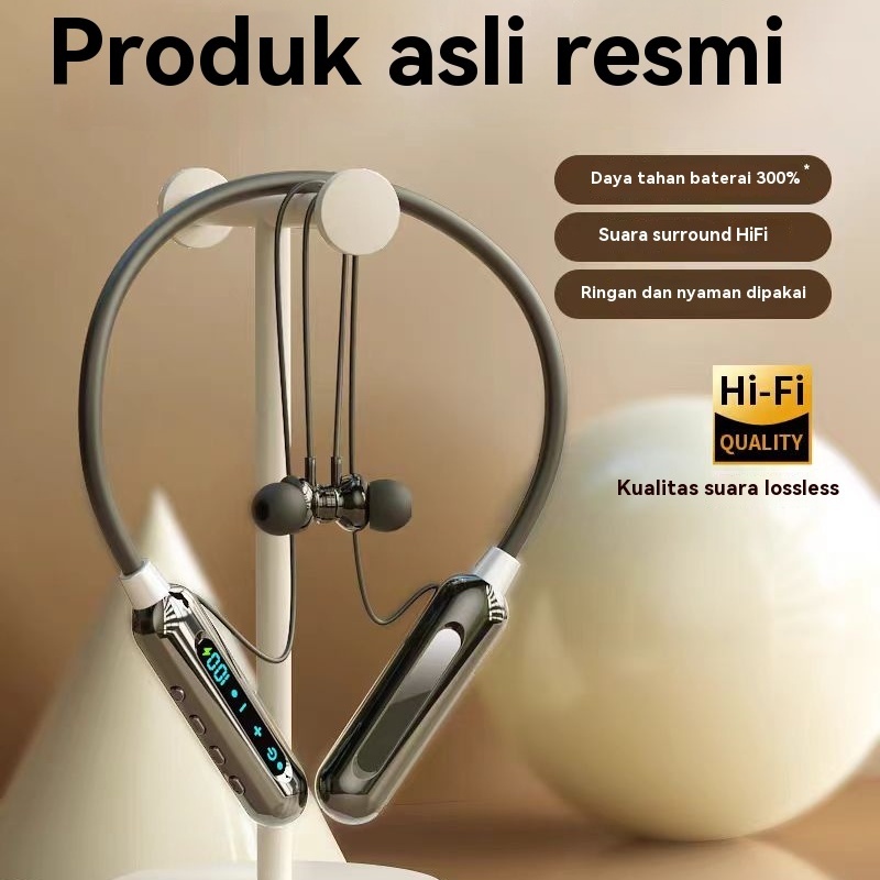 Headset Bluetooth Nirkabel Sesungguhnya Headphone Tali Leher Magnetik Earphone Leher Gantung Olahraga dengan Mikrofon Earphone Bluetooth