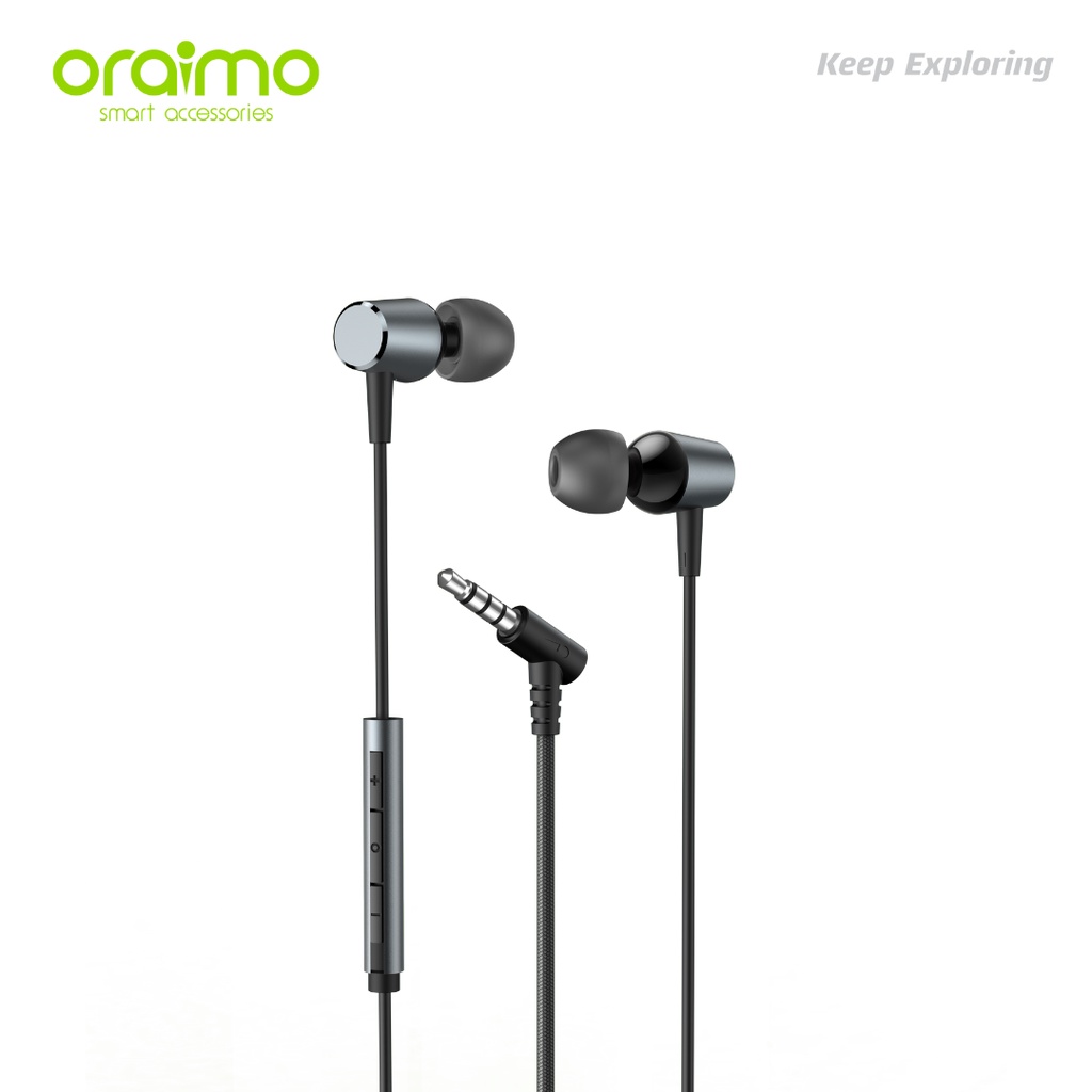 oraimo Earphone Berkabel Trumpet 3 OEPE40 Headset Kabel Mikrofon Bass Logam Headphone Earphone Bebas Genggam Earphone Headset