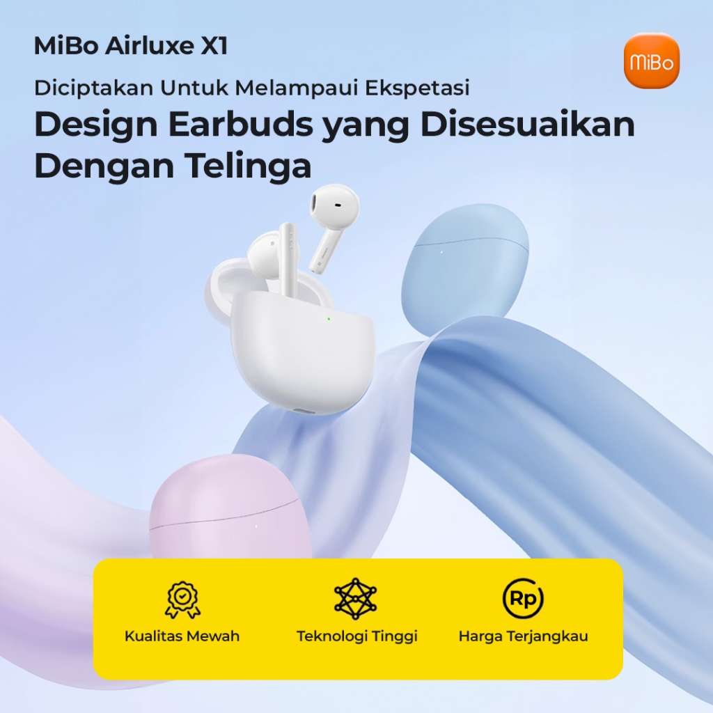 MiBo Airluxe X1 TWS Earbuds Bluetooth 5.3 | HiFi Audio | Gaming Mode | Baterai 32 Jam | Super Ringan