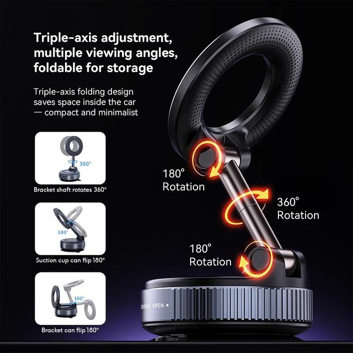 Kiip Mch09 Car Holder Magnetic Adjustable 360° Phone Holder Lipat Electric Mount Car Vacuum Suction - Hitam