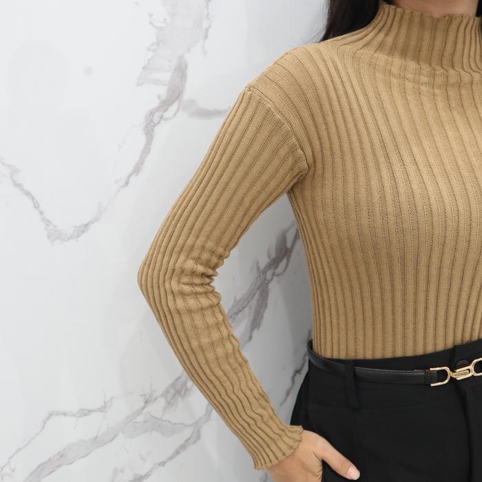 Ais | Turtleneck Daisy - Knit Baju Rajut Polos Wanita - Atasan Inner Manset Rajut Lengan Panjang - Hitam, Standar