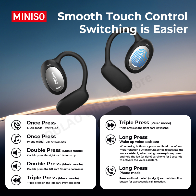 BUY 1 GET 1 MINISO MS181 Headset Bluetooth terjemahan AI wireless Bluetooth headset V5.4 Open Ear earphone OWS TWS tws sport headset olahraga earphone sport IPX5 HIFI