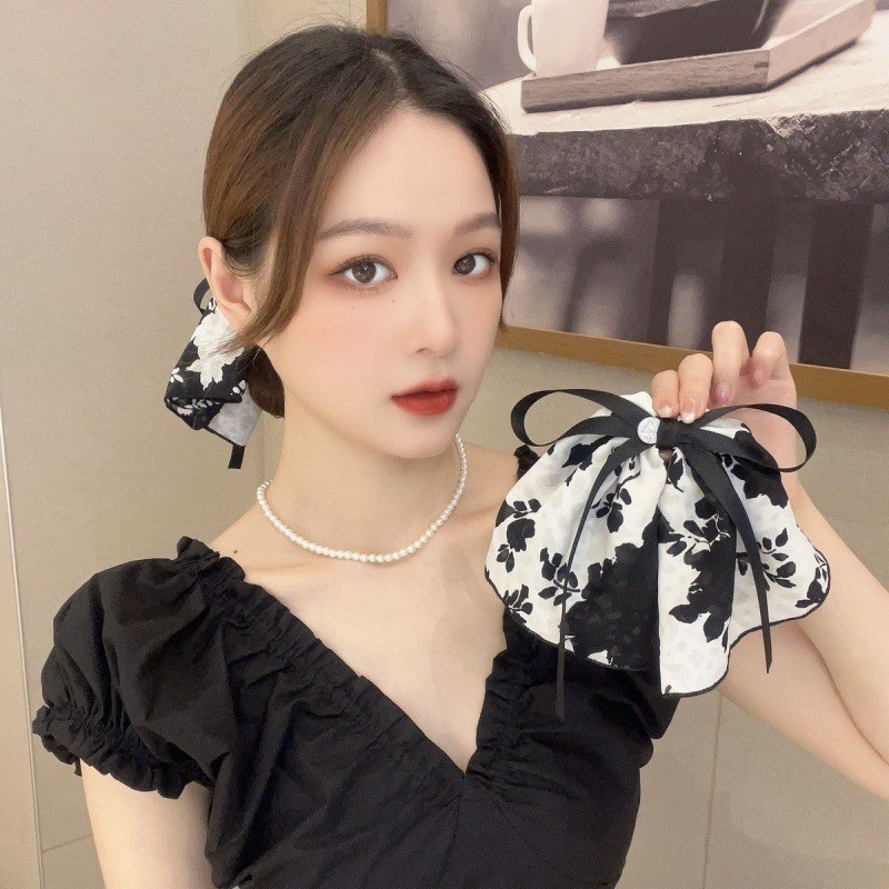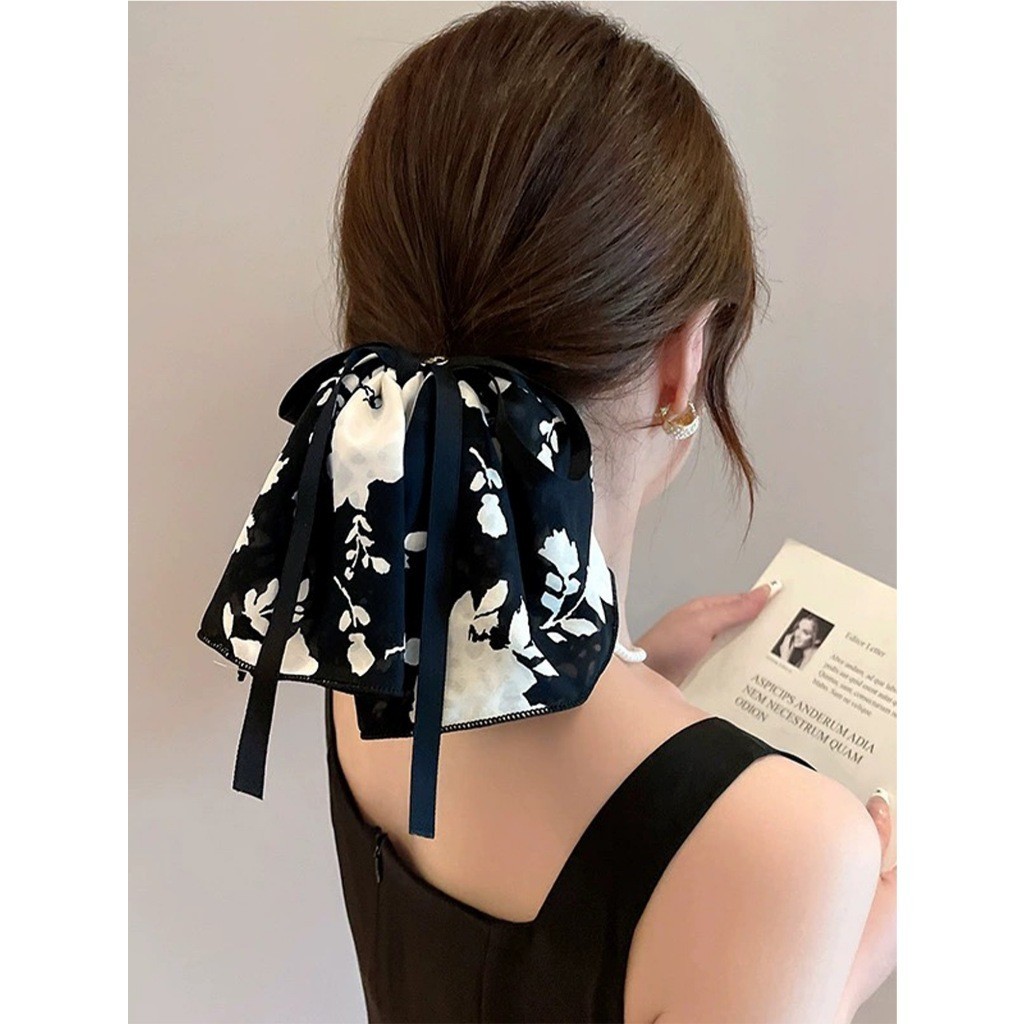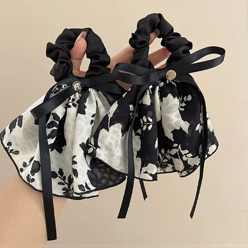 IKAT RAMBUT PITA BESAR WANITA KOREA SCRUNCHIE MOTIF BUNGA AKSESORIS RAMBUT WANITA