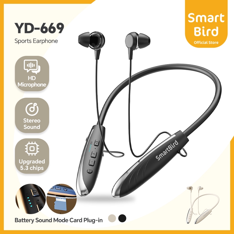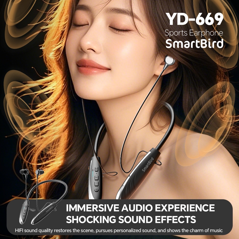 SmartBird Earphone YD669 Bluetooth Neck Hanging Ultralong battery life HIFI Bass BT5.3 TWS Wireless Earbuds Headset Digital Power