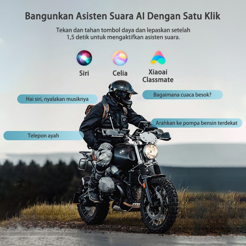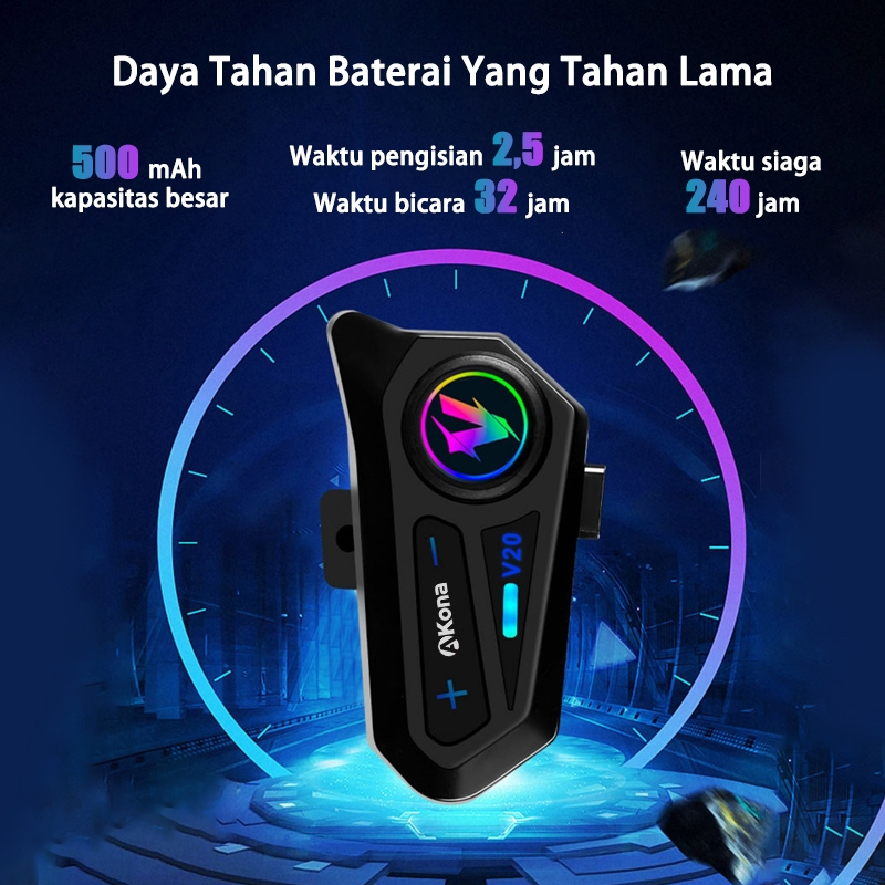 Akona Intercom Helm Motor Headset Helm Bluetooth Hands Free IPX7 Tahan Air Headphone Helmet Wireless Free Microphone