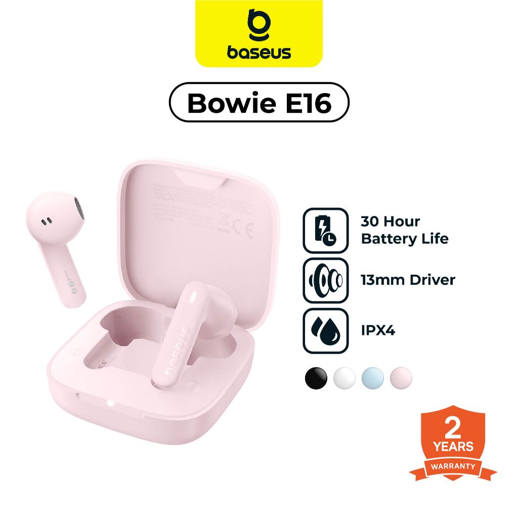 BASEUS TWS Bowie E16 Playing Time 30 Jam HD Audio 13mm Driver IPX4 Earphone Mini In Ear Stereo Bass