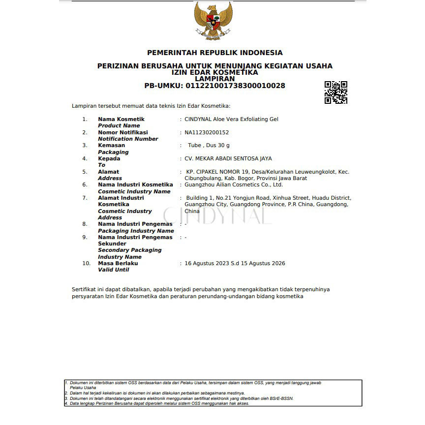 [Promo Dapat 3 Pcs] BPOM Cindynal Exfoliating Gel Aloe Vera Extract Perontok Daki Dan Kulit Mati / Face Peel Scrub