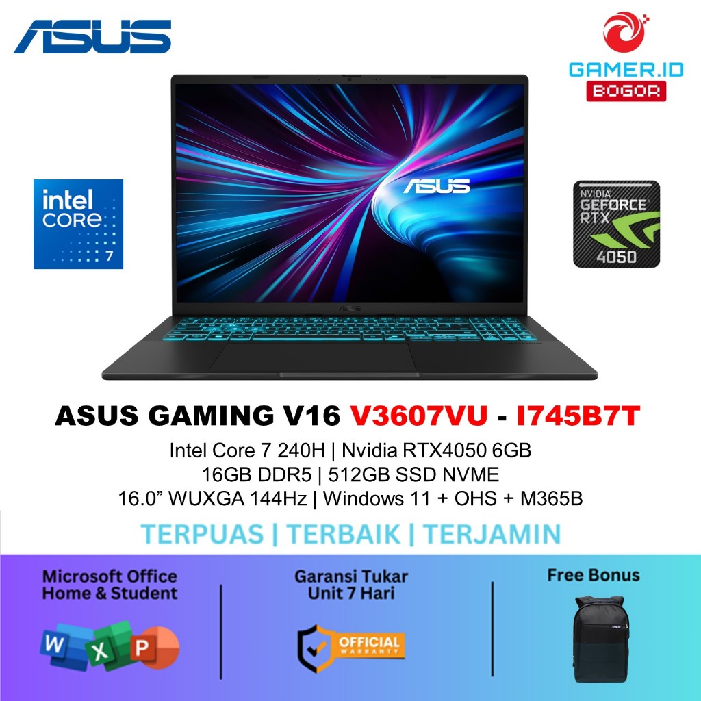 Asus Gaming V16 V3607VU Intel Core 7 240H RTX4050 6GB/ 16GB 512GB W11+OHS 16.0 Wuxga 144HZ -I745B7T