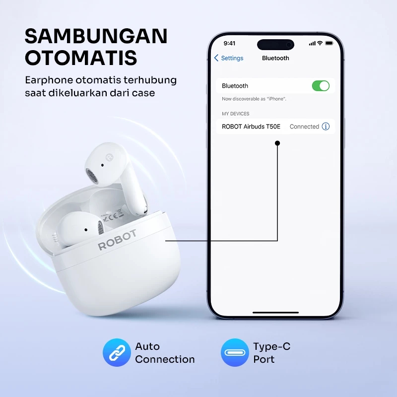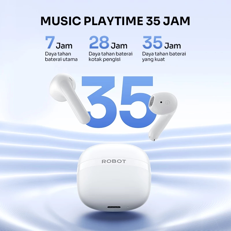 ROBOT TWS Wireless Earphone Airbuds New T50E Original Bluetooth 6.0 True Wireless Headset Bluetooth Earbuds IPX4 Waterproof Garansi 1 Tahun
