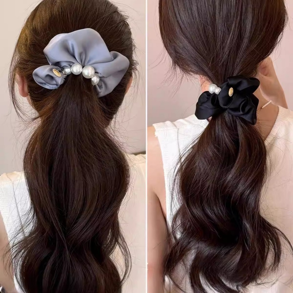 IKAT RAMBUT WANITA KOREAN STYLE BAHAN SATIN SCRUNCHIE MODEL MUTIARA AKSESORIS FASHION ASW KCR26