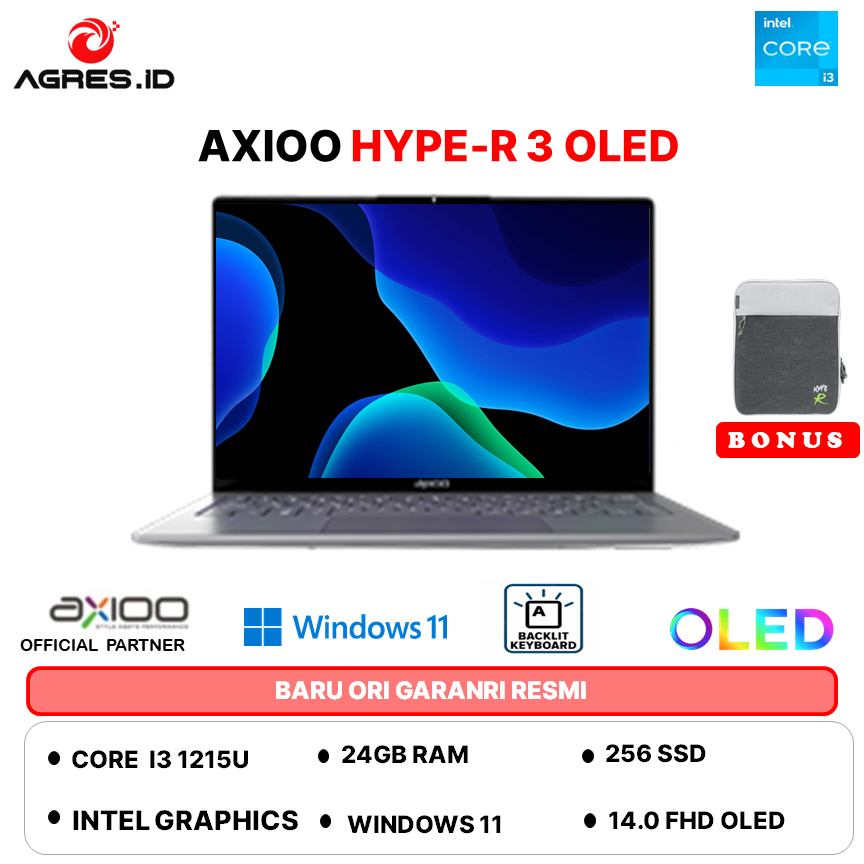 AXIOO HYPE-R 3 OLED I3 1215 24GB 256GB W11+OFFICE PERMANEN 14.0FHD BLK (UNDER 1KG) RESMI