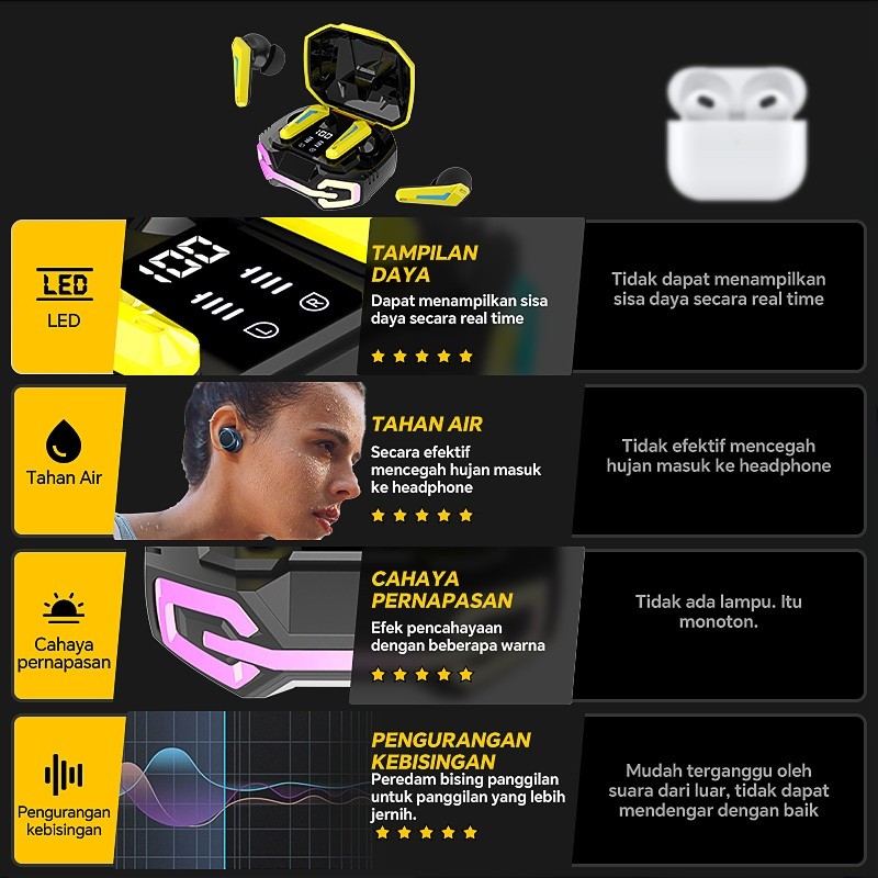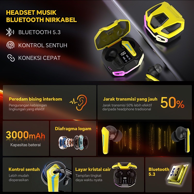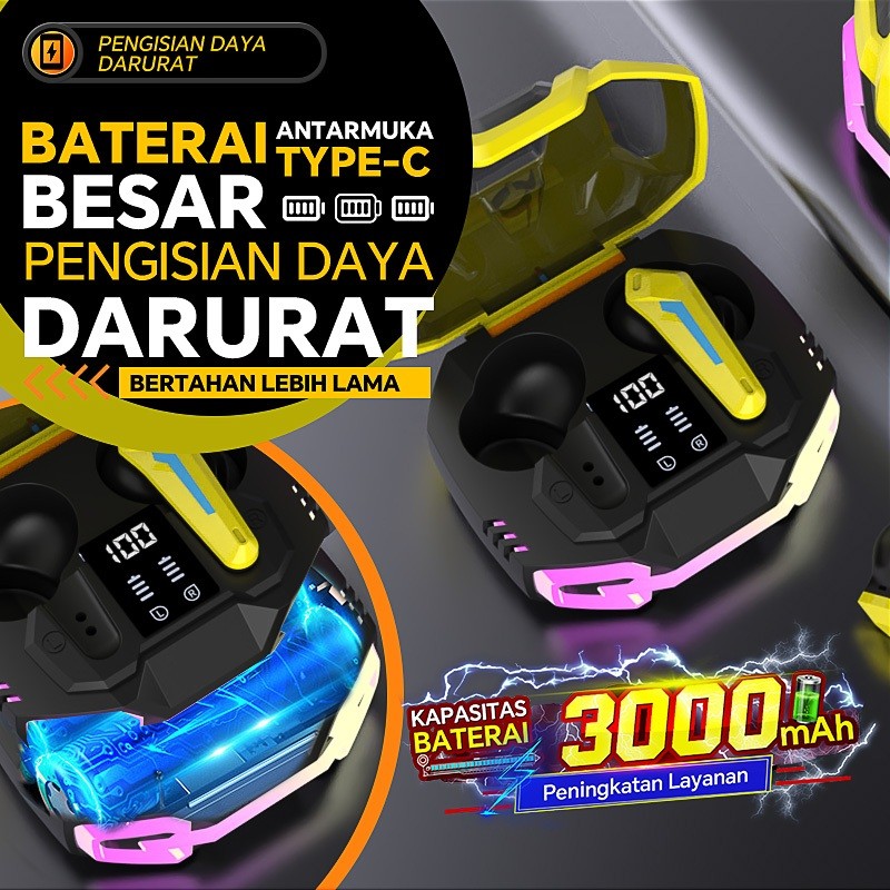 MANU Bluetooth Earphone TWS GL9 Headphone Gaming Latensi RendahBluetooth 5.3 & Koneksi Cepat, Tampilan LED,