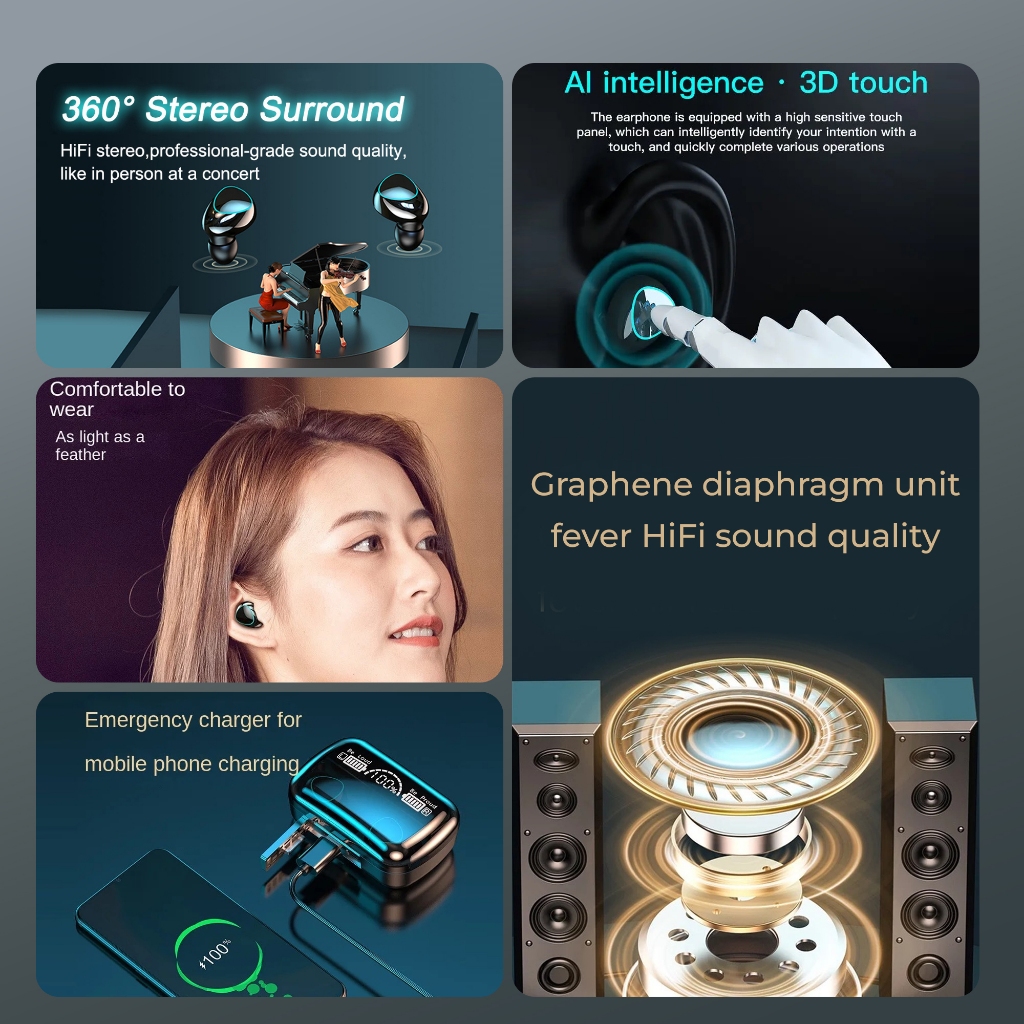 Jovitech TWS M10Pro Wireless Earphone +Power bank 3500mAh LED Display BT 5.3 True Wireless Earbuds IPX4 WaterProof T63