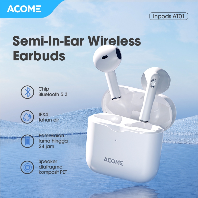 Acome TWS Bluetooth 5.3 Headset Earphone IPX4 Waterproof 3 Gram Ultra Light In AT01 Garansi Resmi 1 Tahun