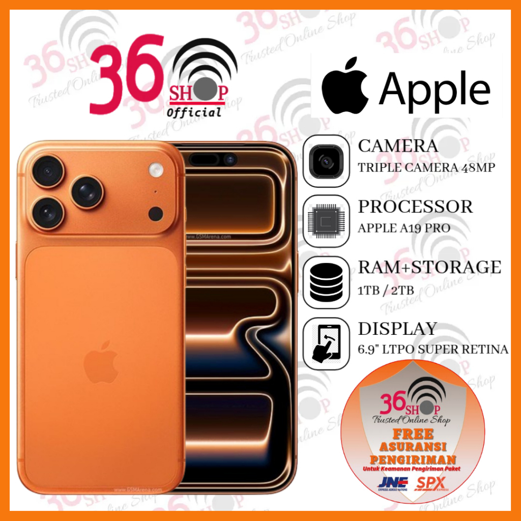 iPhone 17 Pro Max [1TB] [2TB] Super Retina XDR OLED 6.9 inches - Chipset A19 Pro - 4823mAh [RESMI]
