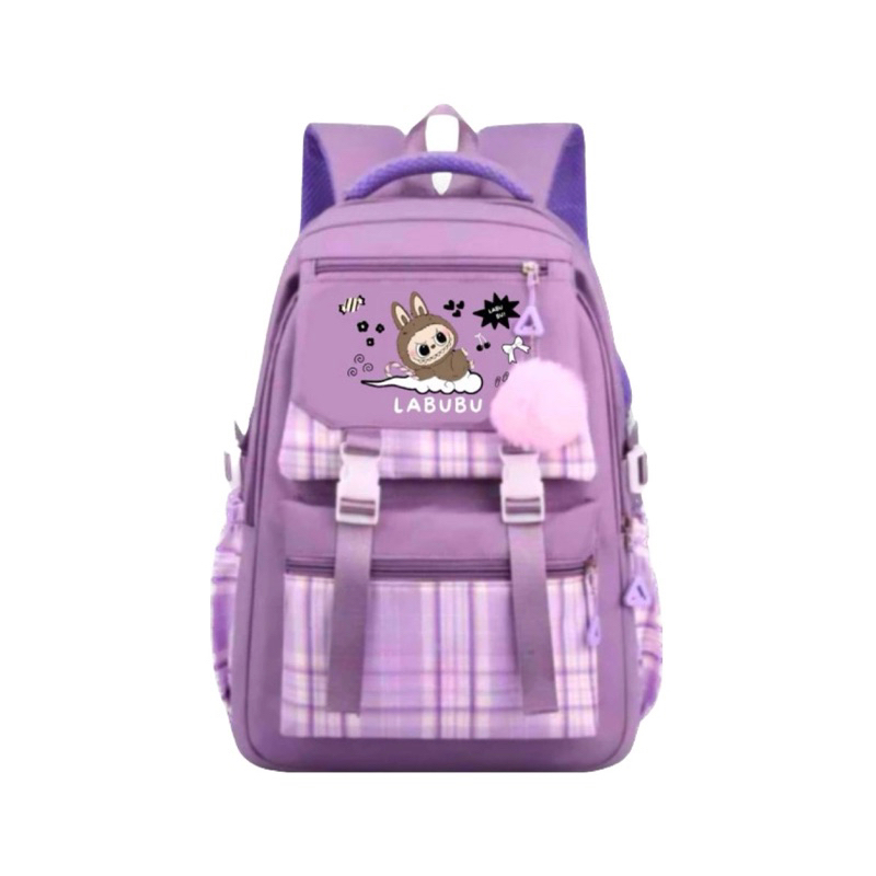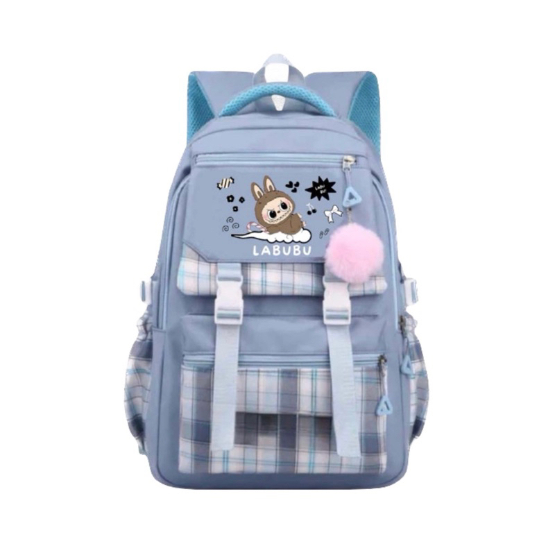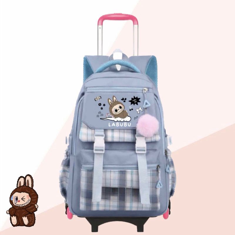 Tas Ransel Dorong Troli Labubu Motif Kotak Tas Punggung Anak Sekolah SD Termurah Tas Koper