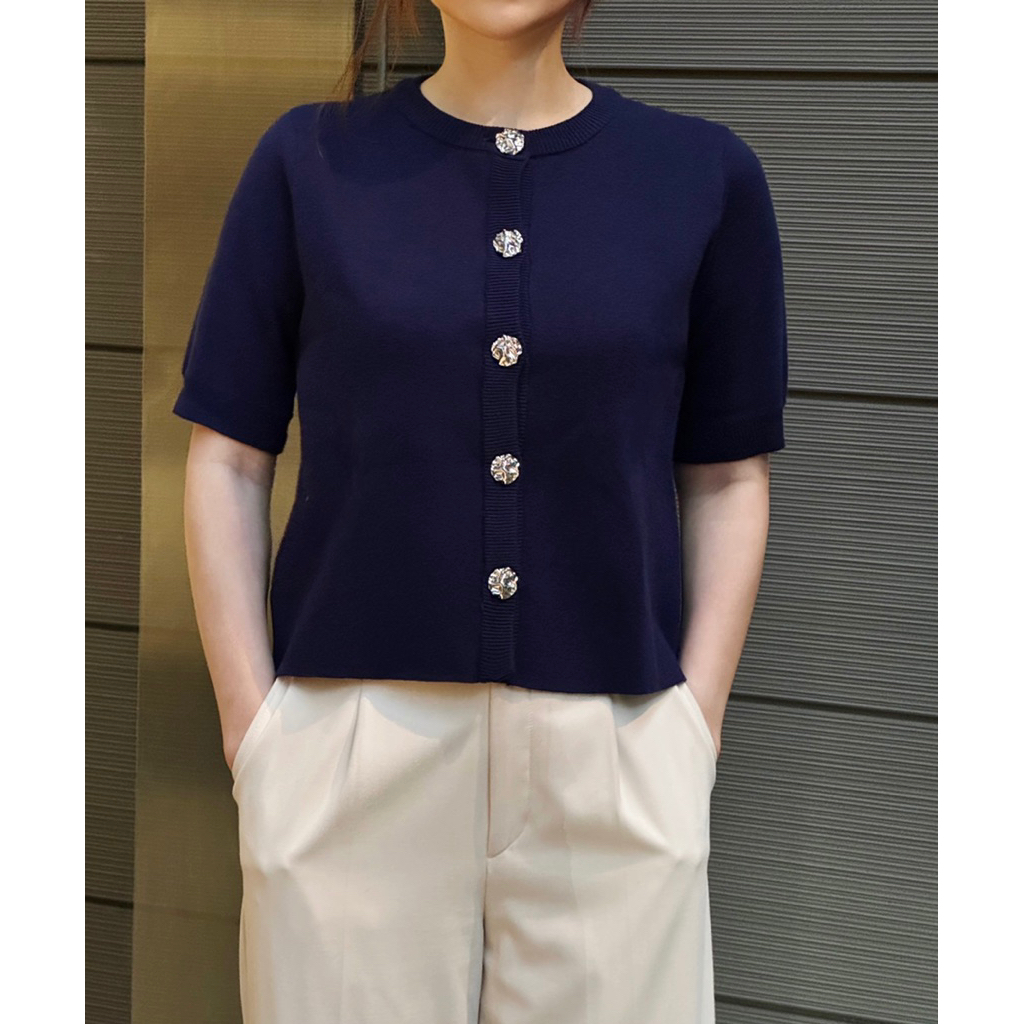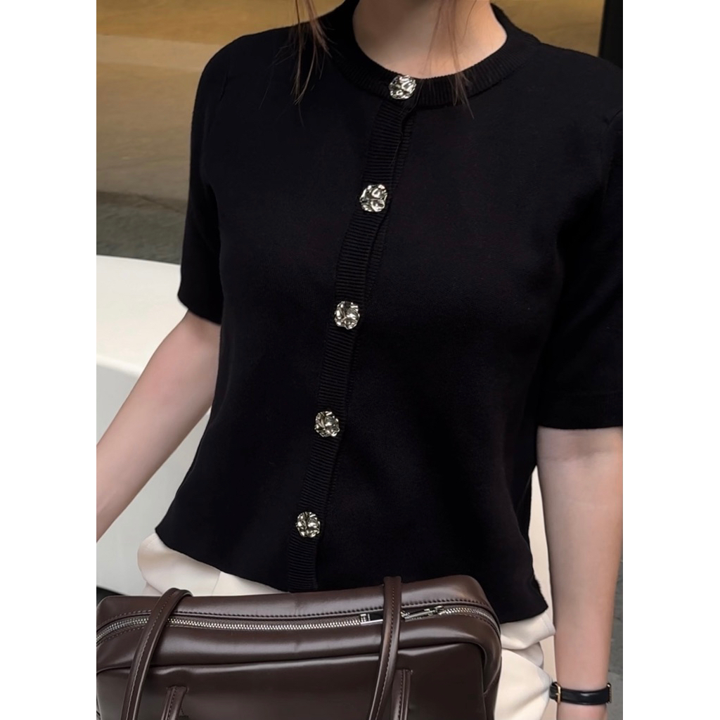 MINA - Maison Short Sleeve Knit Cardigan - Basic Cardigan Outer Atasan Wanita Rajut Lengan Pendek