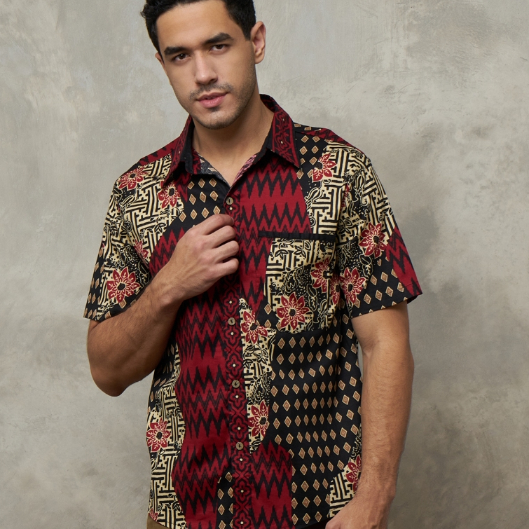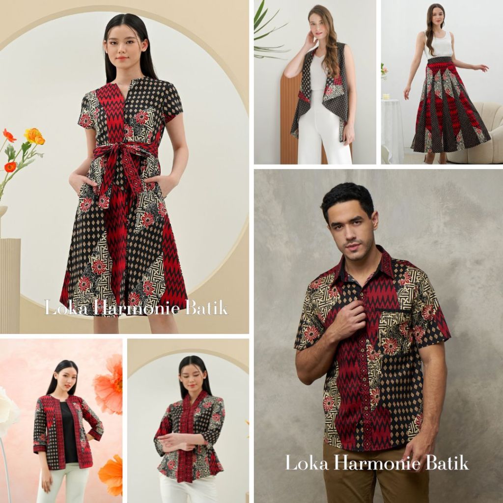 Batik Motif Asb Hitam Merah - Baju Atasan Dress Kemeja Batik Keluarga Pasangan Couple Anak Modern Kekinian Imlek Natal T