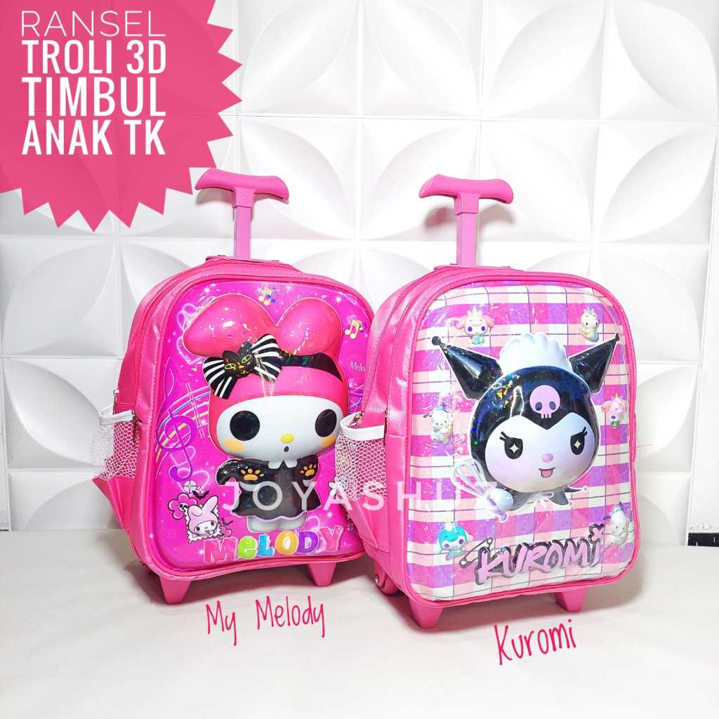 Tas Troli Anak Perempuan TK Kuromi - Tas Dorong Anak TK 3 Dimensi - Tas Roda Koper Anak TK - Tas Kuromi - Tas My Melody - Ransel Dorong Anak TK - Joyashuz