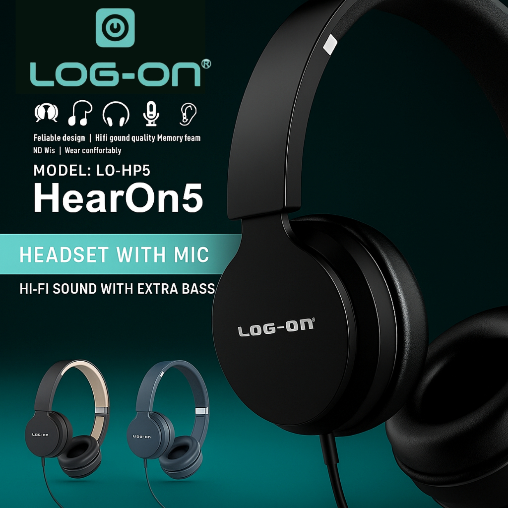 Headphone Bando Log On HP05 Musik HIFI With Mic Foldable Gaming HF Earphone 1 Tahun Garansi