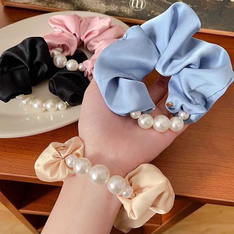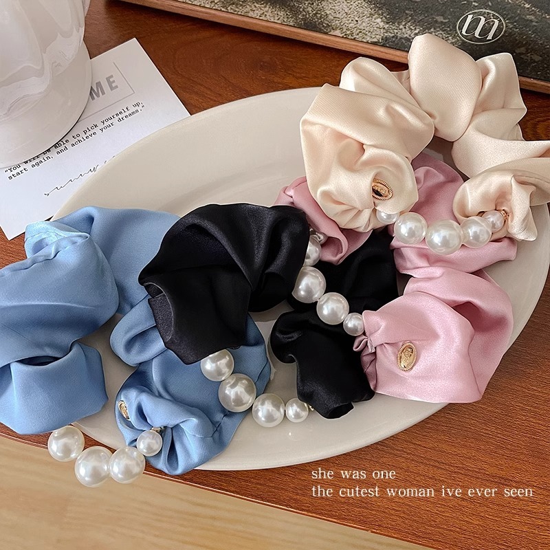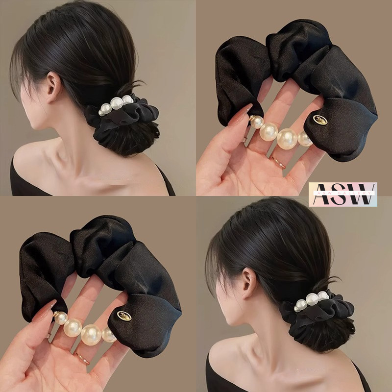 IKAT RAMBUT WANITA KOREAN STYLE BAHAN SATIN SCRUNCHIE MODEL MUTIARA AKSESORIS FASHION ASW KCR26