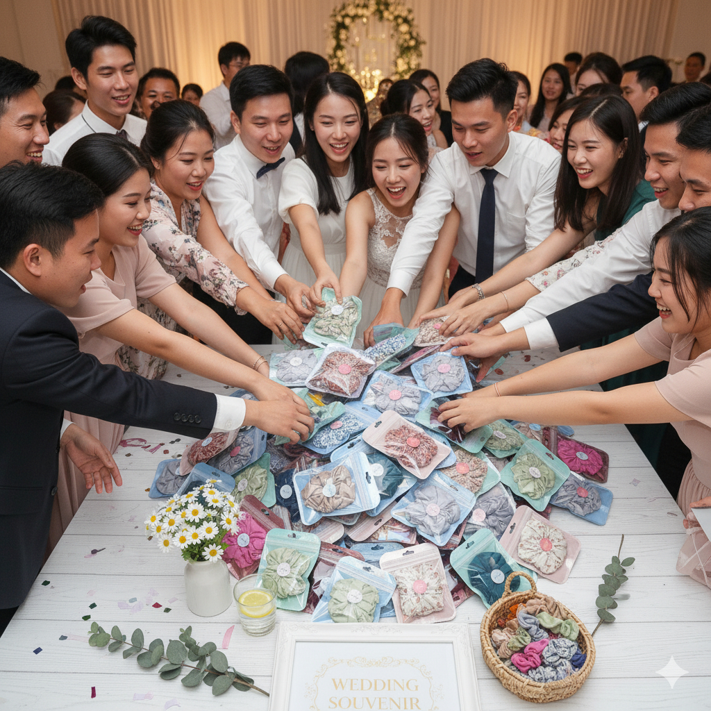SOUVENIR PERNIKAHAN IKAT RAMBUT SCRUNCHIE SATIN VELVET WEDDING