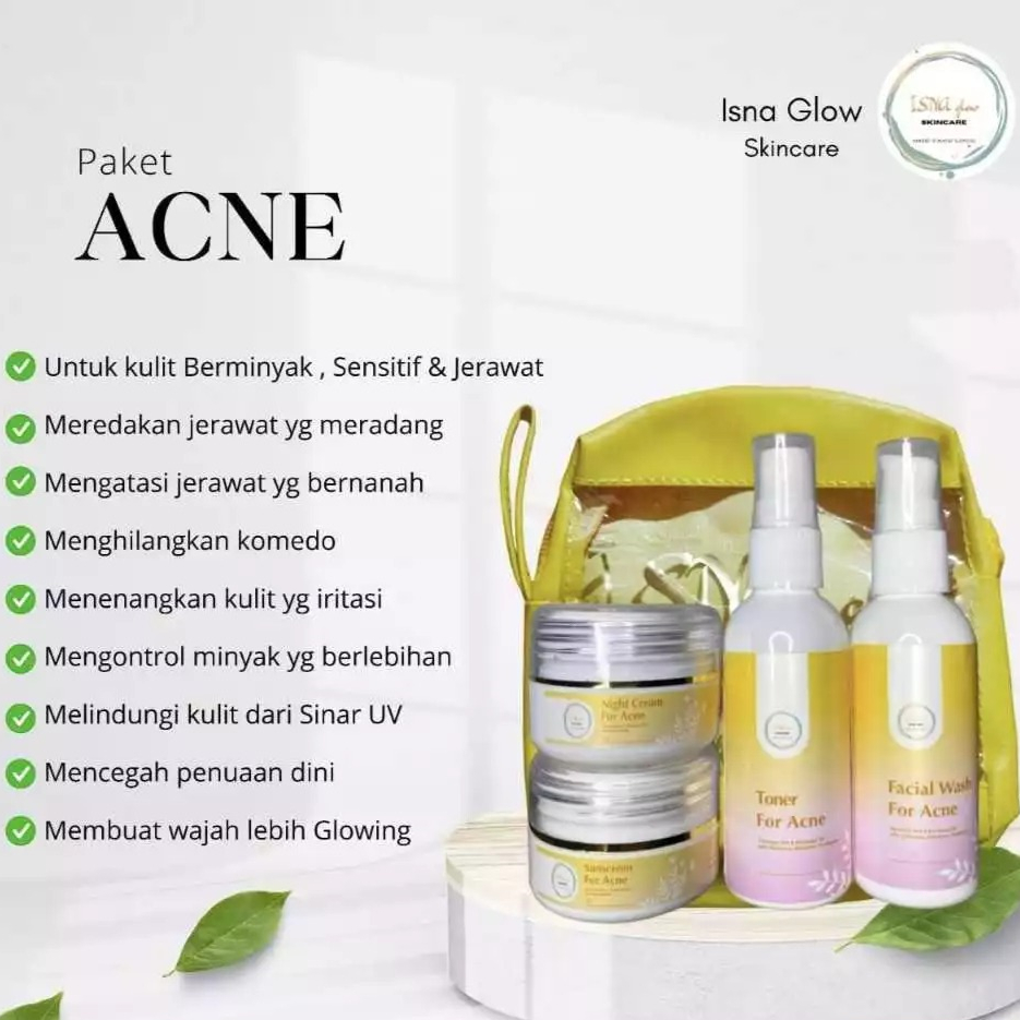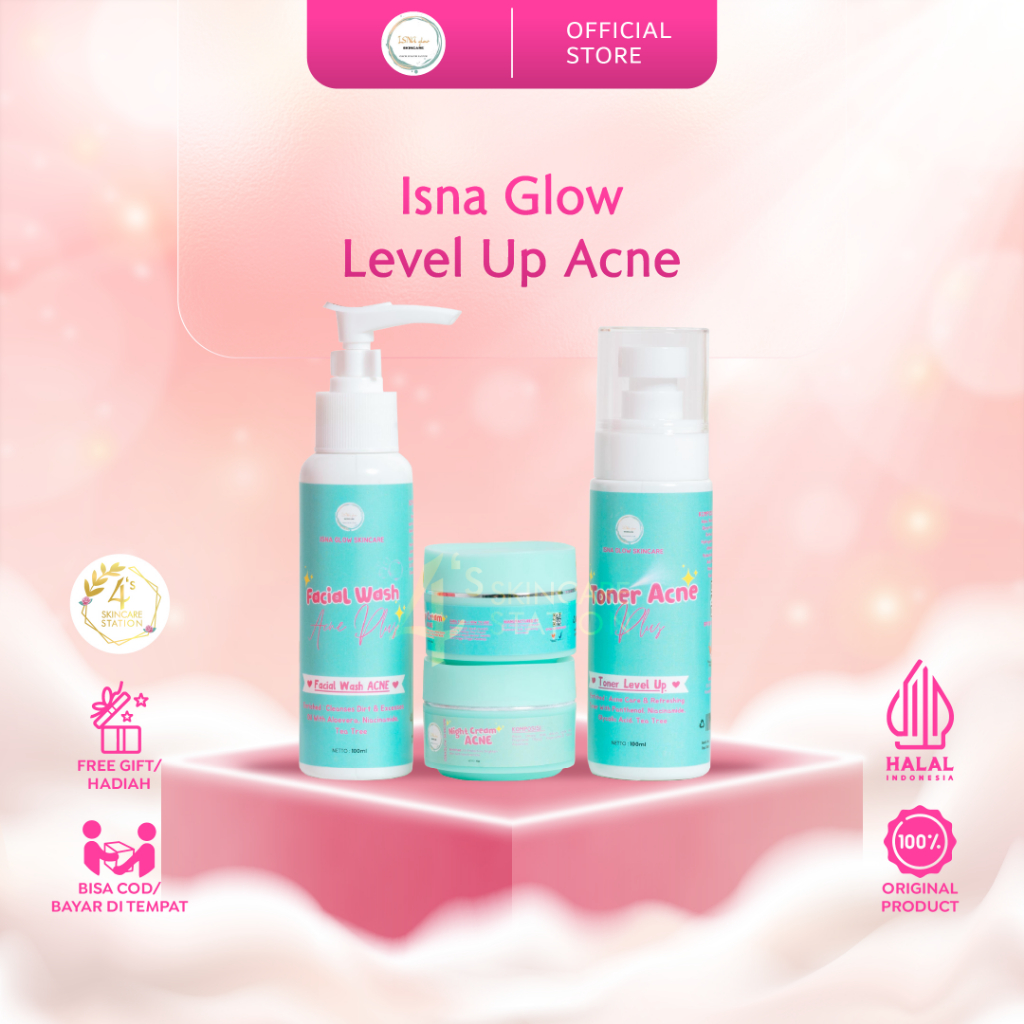 ISNA GLOW Skincare Mencerahkan dan Mengatasi Jerawat Level Up Acne dan Normal Kulit Kusam Berjerawat