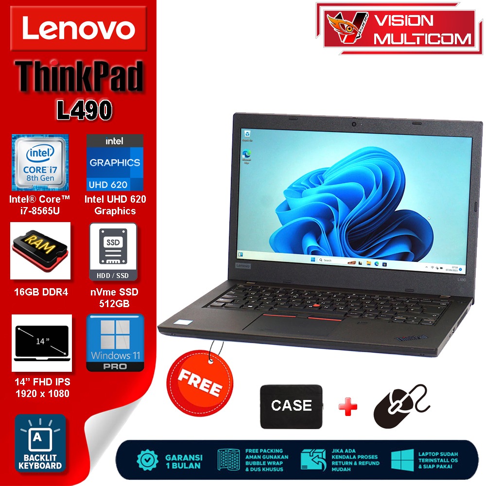 Laptop LENOVO Thinkpad L490 Core i7 Gen 8 | 16GB / nVme SSD 512GB | 14" FHD IPS Backlight