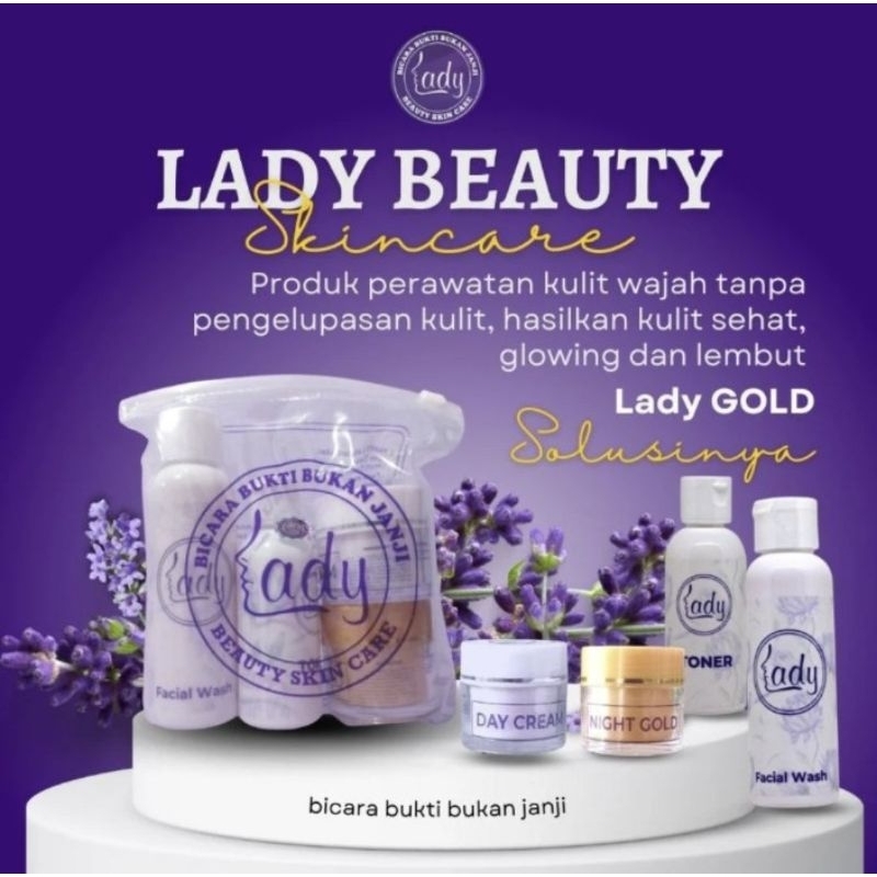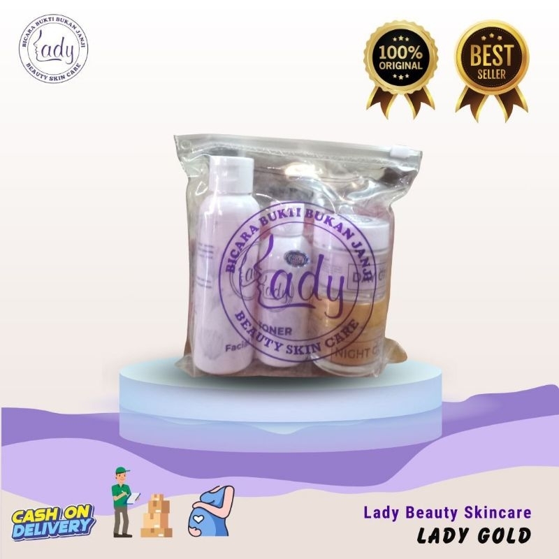 Lady Gold Paket kemasan baru Mencerahkan dan Glowing untuk kulit wajah Lady Beauty Skincare Original
