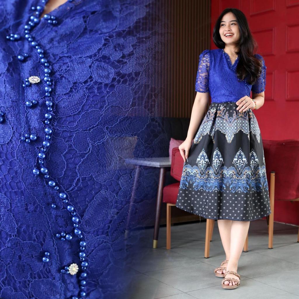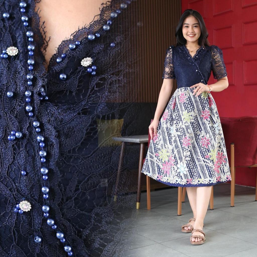 Dress Natal Couple Kemeja Batik /Dres Kondangan Bahan Brukat Mix Batik Couple/Seragam Keluarga Natal