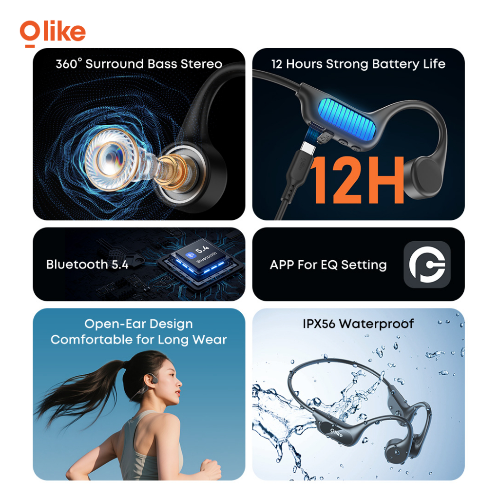 OLIKE TWS Wireless Earphone EBC01 Bone Conduction Headset Bluetooth IPX56 Stereo Bass