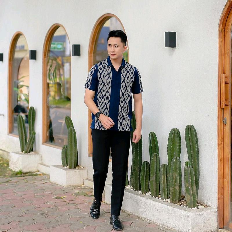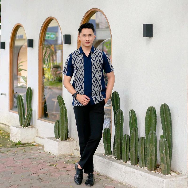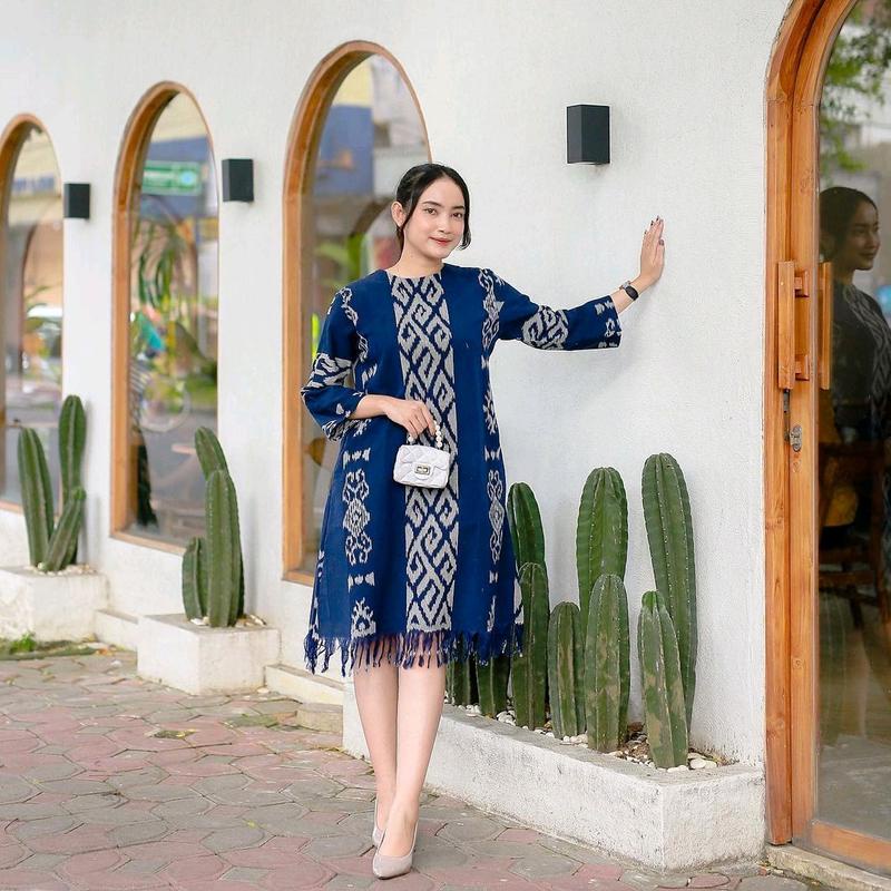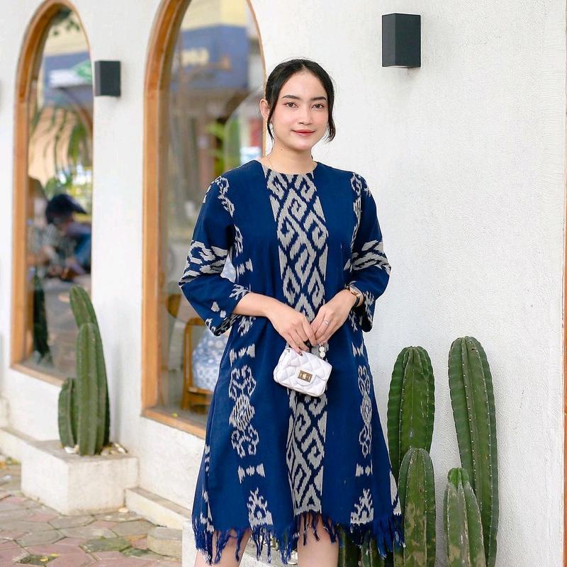 Baju Couple Keluarga - Baju Natal Couple Kemeja Pria Dan Dress Wanita Bahan Tenun Asli