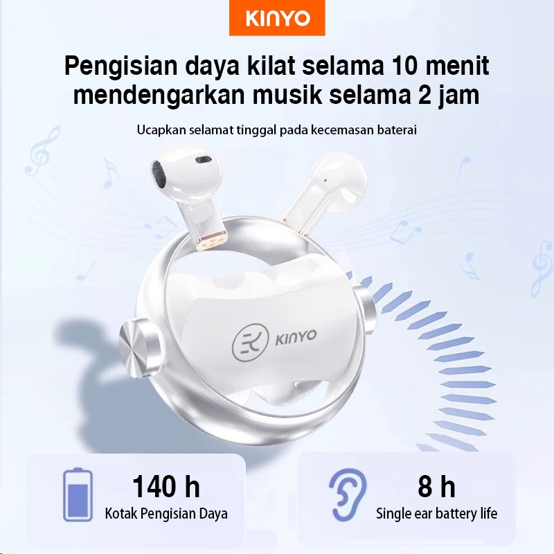 Kinyo A20 TWS four headset bluetooth 5.4 Headset Wireless in ear AI HD Noise Reduction call Henset Ear Clip 4g Ringan Nyaman Dipakai