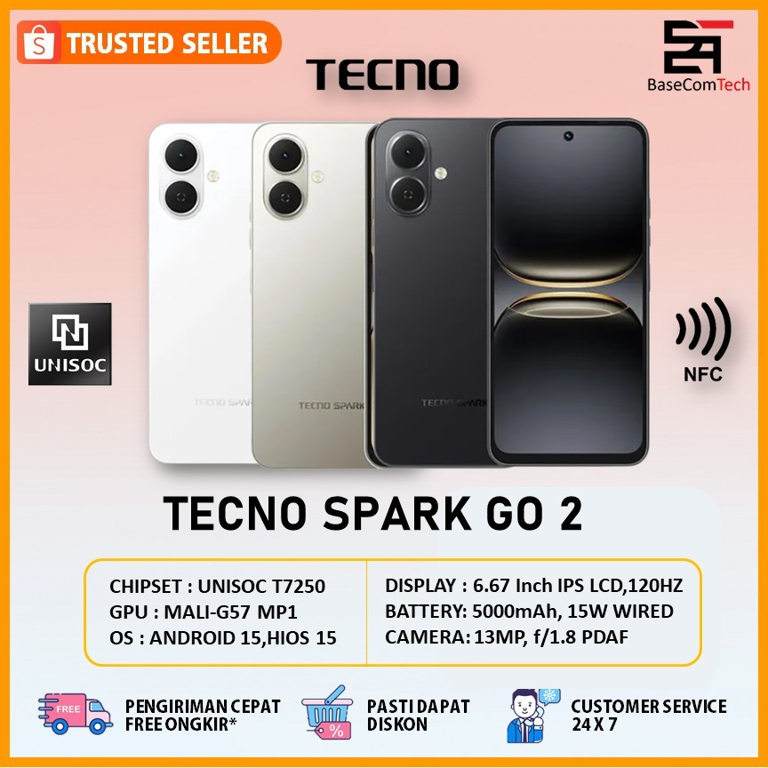 Tecno Spark Go 2 4GB 128GB | 6.67 Inches | 5000mAh 18W Wired | Resmi Indonesia