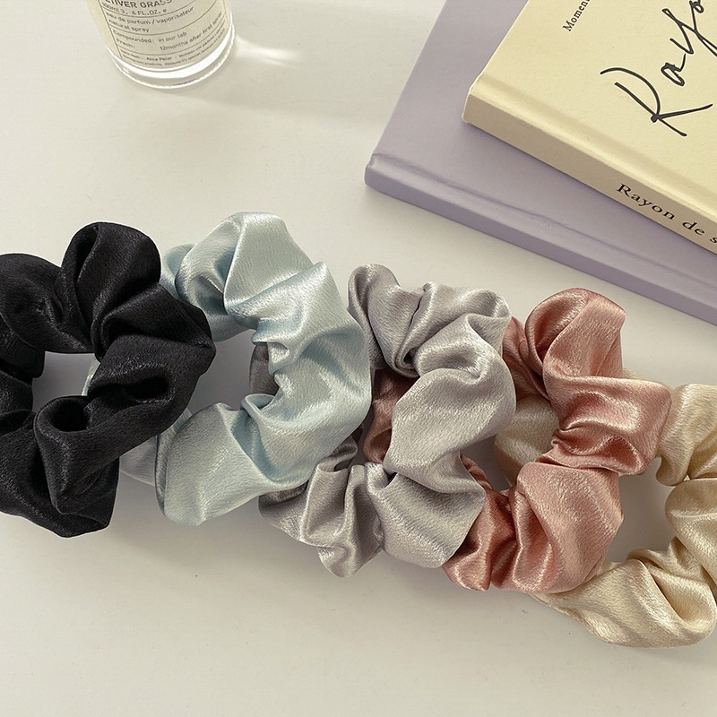 SCRUNCHIE SATIN GLOSSY IKAT RAMBUT WANITA MOTIF POLOS WARNA HITAM PUTIH PINK LILAC