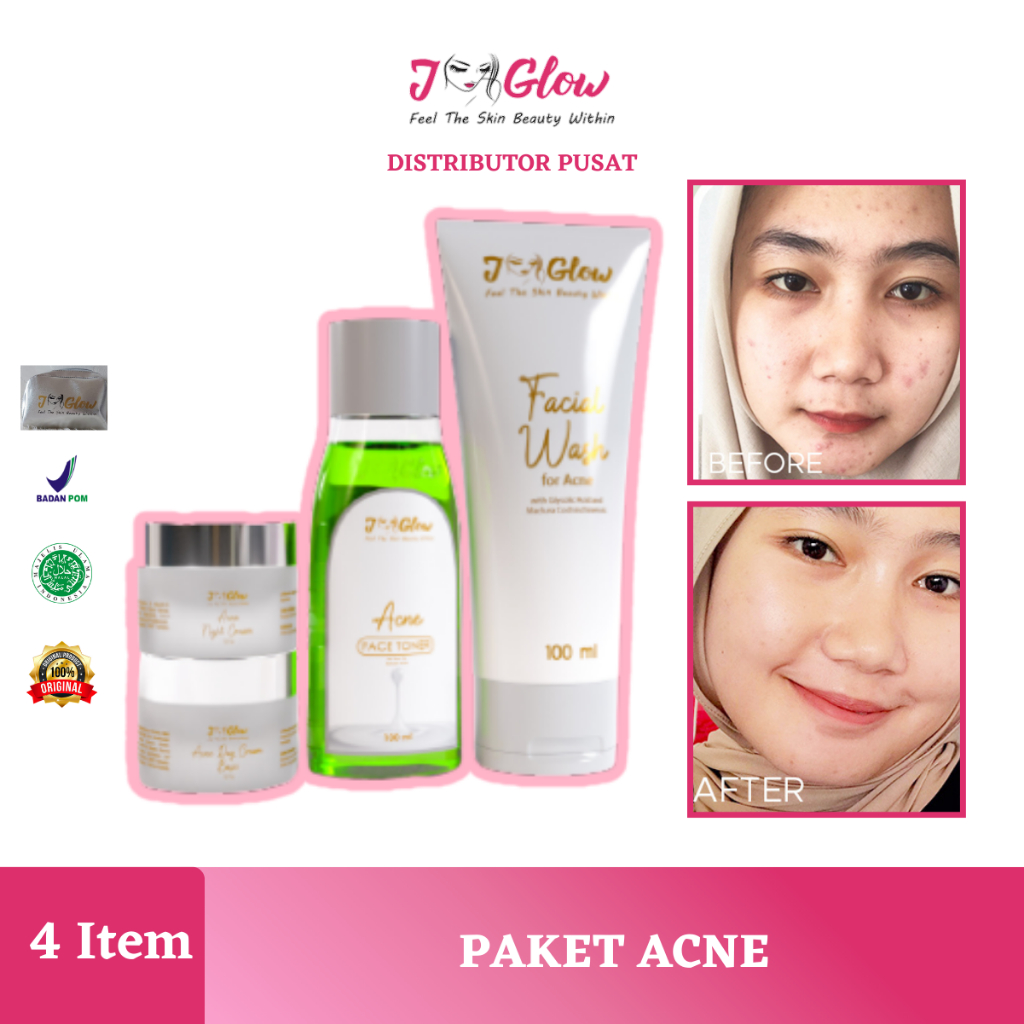 JGLOW Paket Acne Whitening Paket Perawatan Wajah berjerawat Skincare BPOM