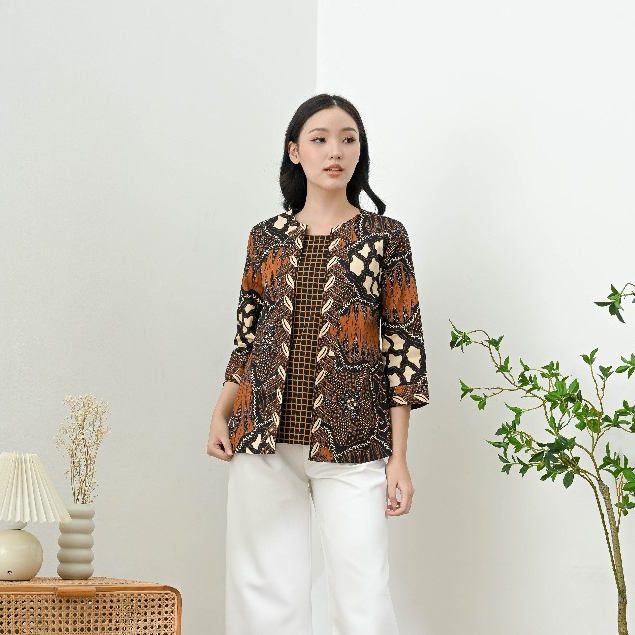 Batik Motif Ali Coklat Hitam - Baju Atasan Dress Kemeja Batik Keluarga Pasangan Couple Anak Modern Kekinian Imlek Natal