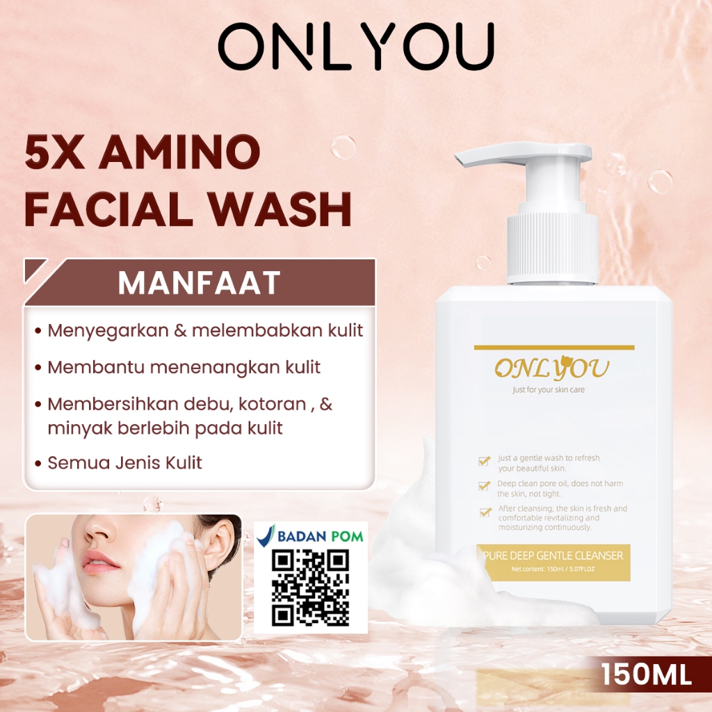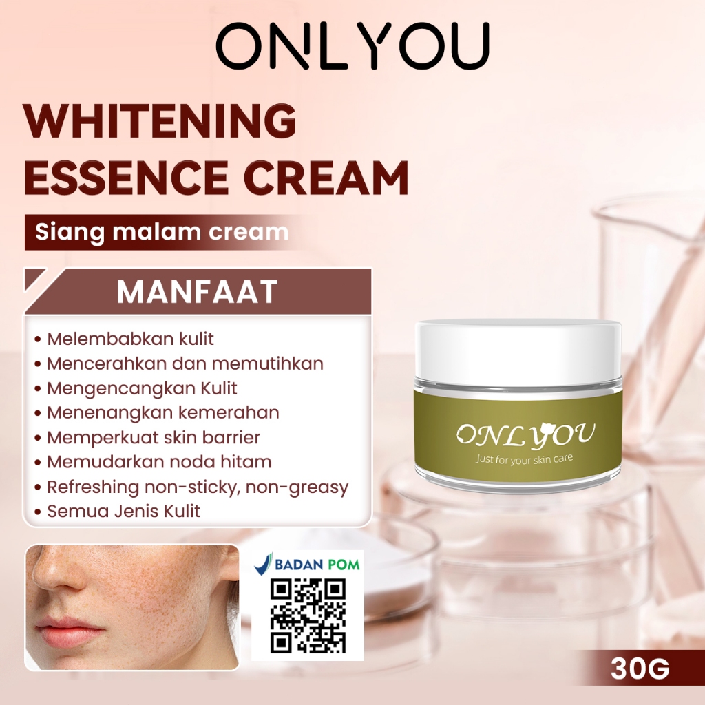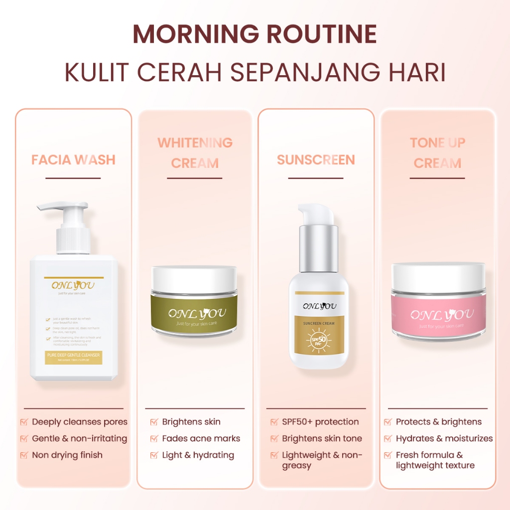 ONLYOU Glowing Paket - ONLYOU Sunscreen SPF50+ PA+ / Whitening Essence Cream Siang Malam Skincare / 5X Amino Facial Wash / Bright Tone Up Cream