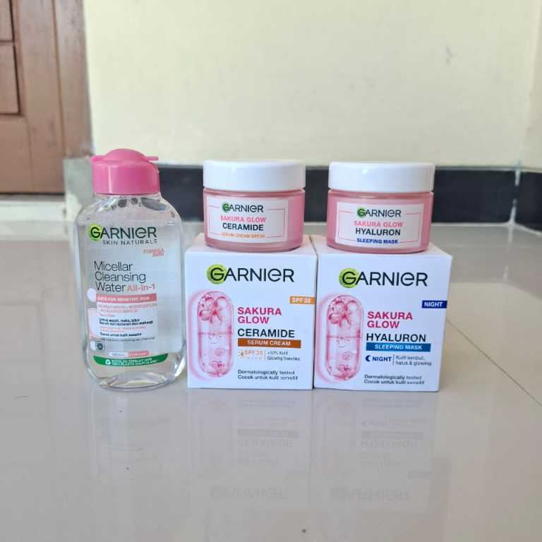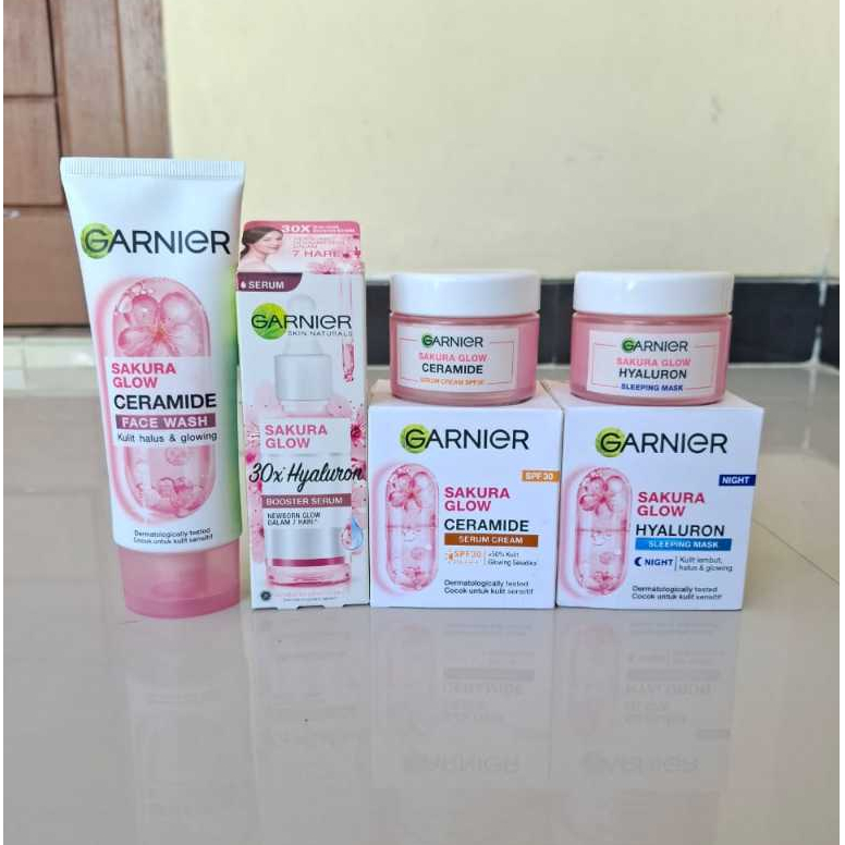 Paket Komplit 5in1 Skincare Garnier Sakura Glow Skin Barrier Simple Set - Untuk Kulit Glowing Anti Ribet & Perbaiki Skin Barrier