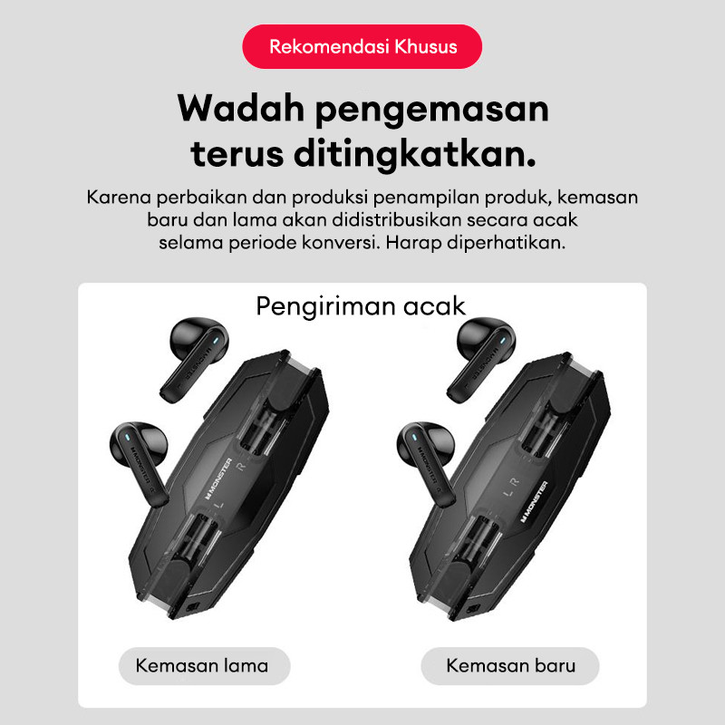 Monster XKT08 Earphone Bluetooth Low Latency Smart Touch Sport Waterproof Gaming Headset Bluetooth 5.3