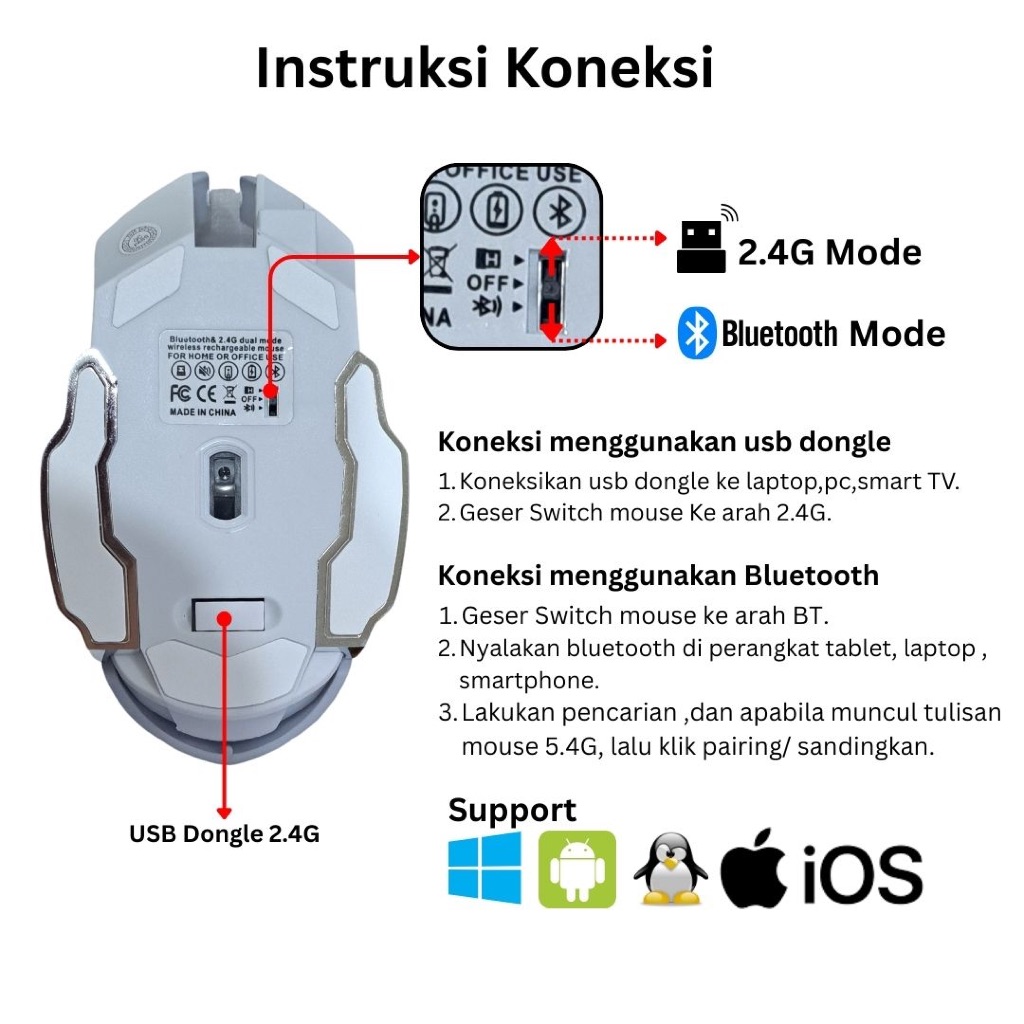 Quinton Mouse wireless gaming 6D button Rechargeable T2 led RGB 2.4G Bluetooth - Mouse Bloototh Laptop & Pc Wireles Tabl