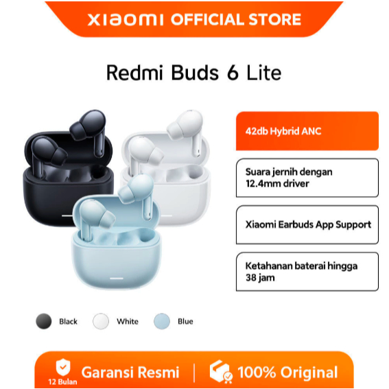 Xiaomi TWS Redmi Buds 6 Lite | Baterai hingga 38 Jam | 40db Hybrid ANC | AI Noise Cancellation